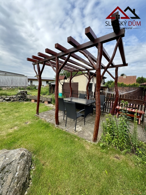 K domu náleží pozemky o souhrnné rozloze 794 m2. Bezprostředně kolem domu se rozkládá udržovaný, rovinatý pozemek o výměře cca 683 m2, který je celý oplocen. Zahrada má okrasný charakter ? najdete zde skalky s květinami, které vytvářejí příjemné prostředí pro relaxaci. Nechybí ani útulné venkovní posezení, ideální pro grilování či odpočinek v soukromí zeleně. K dispozici je vlastní studna s užitkovou vodou, kterou oceníte například při zalévání zahrady.