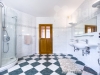 V přízemí domu se dále nachází ložnice, dva dětské pokoje, pracovna a prostorná koupelna s vanou, sprchovým koutem a toaletou. Dřevěné schodiště vás zavede do prvního patra, kde naleznete další ložnici, tři samostatné pokoje, koupelnu se sprchovým koutem, WC a technickou místnost s technologií k fotovoltaické elektrárně.