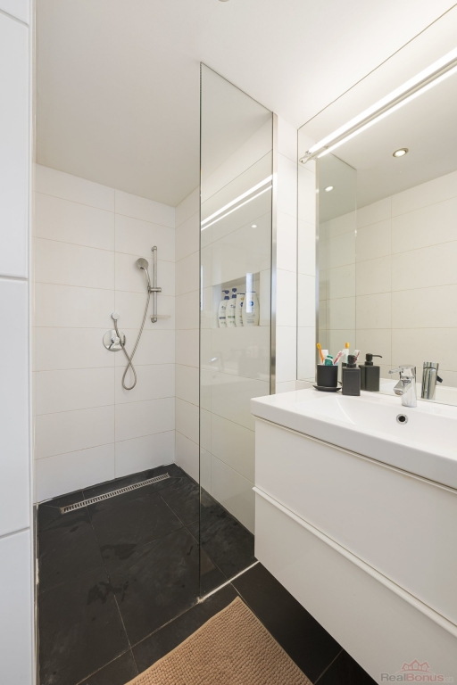 koupelna se sprchovým koutem, WC a místem pro pračku
