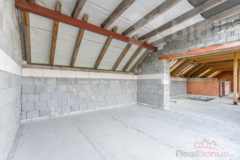Dům je navržen pro dvougenerační bydlení, což znamená dvě samostatné bytové jednotky o dispozici 4+1. První jednotka nabízí pohodlí dvou koupelen a dvou šaten, které zajistí dostatek úložného prostoru. Druhá jednotka se pyšní terasou s výhledem do zahrady, garáží a dokonce ateliérem či dílnou - ideální pro vaše koníčky nebo práci z domova.