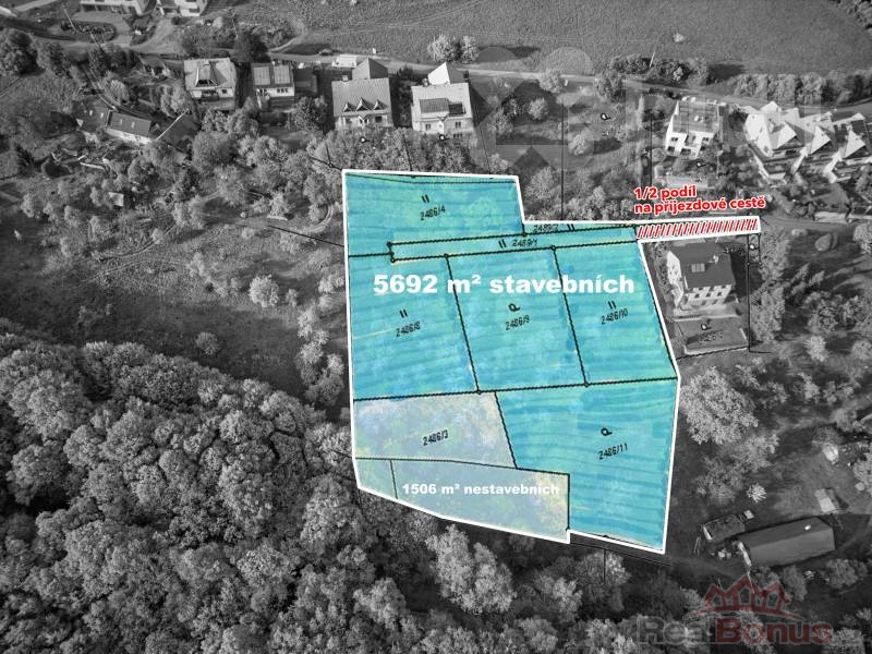 Ve výhradním zastoupení klienta Vám zprostředkujeme koupi souboru pozemků, ležících na místě původního sadu s přestárlými ovocnými stromy, v žádané lokalitě krajského města Zlína. Dle platného územního plánu leží 5692 m2 těchto pozemků v zastavitelných plochách individuálního bydlení BI s výškovou regulací zástavby maximálně dvou nadzemních podlaží, 1506 m2 pozemků je nestavebních a leží v plochách smíšených nezastavěného území S*. Celý komplex pozemků se nachází v katastrálním území města Zlína, v části Zlínské Paseky, Ostrá horka II. Svažitý terén směrem k jihu zaručuje celodenní slunce a také velkorysý výhled směrem k městu i do krajiny. Z východní strany jsou pozemky napojeny přes soukromou komunikaci (1/2 podíl na této komunikaci je taktéž součástí koupě) na komunikaci obecní. Technická infrastruktura je vyřešena, inženýrské sítě - elektro, vodovod, dešťová a kanalizační přípojka jsou připraveny přímo na východní straně nabízených pozemků. Pro svou jedinečnost byly tyto pozemky před lety vybrány svými majiteli ke stavbě rodinného domu, jehož vizualizace je přiložena ve fotografiích i videu. Moderní dvoupodlažní rodinný dům s terasami byl navržen v nepravidelném tvaru, byla vypracována kompletní projektová dokumentace, bylo vydáno i stavební povolení, které ale již z důvodu nezahájení stavby pozbylo platnosti. V případě zájmu je celý tento projekt k dispozici nového majitele, kterému jistě usnadní a zkrátí zdlouhavé procesy stavebního řízení. Nabízené pozemky se prodávají jako celek, neboť toto jedinečné místo je určeno pro náročného klienta, který miluje život v blízkosti centra města, ale v prostředí klidné lokality a zeleně. Pro více informací o jednom z posledních zastavitelných jižních svahů ve Zlíně kontaktujte prosím naši makléřku.
