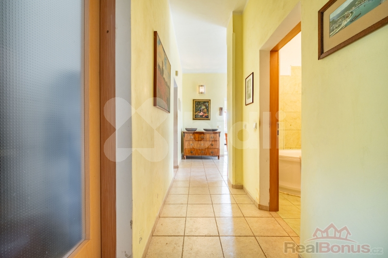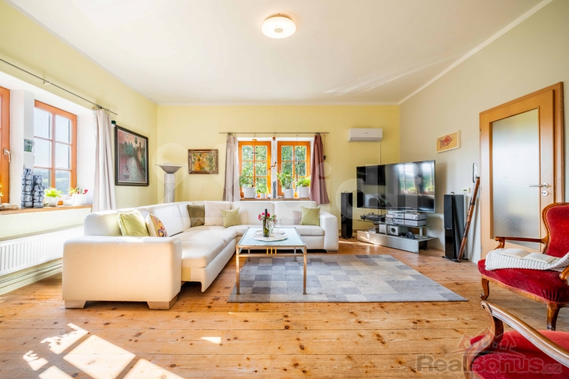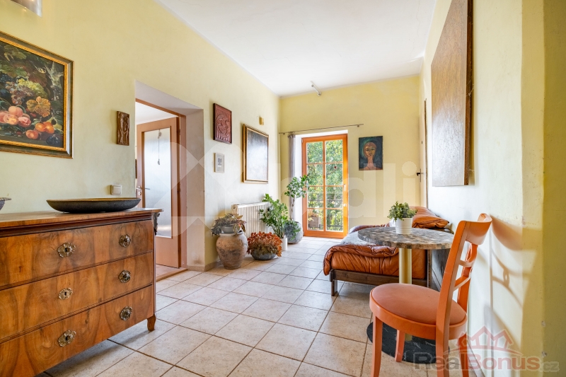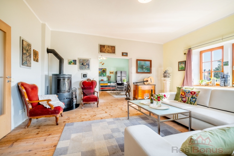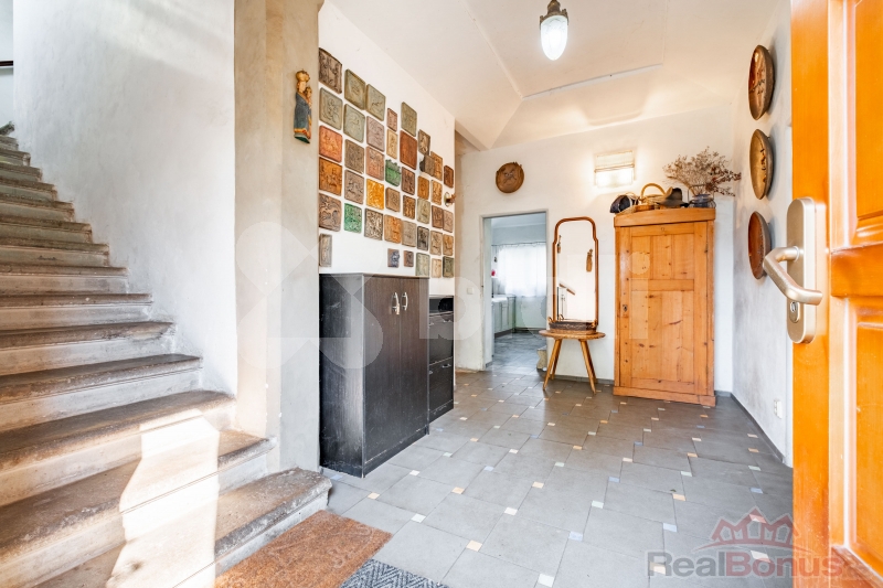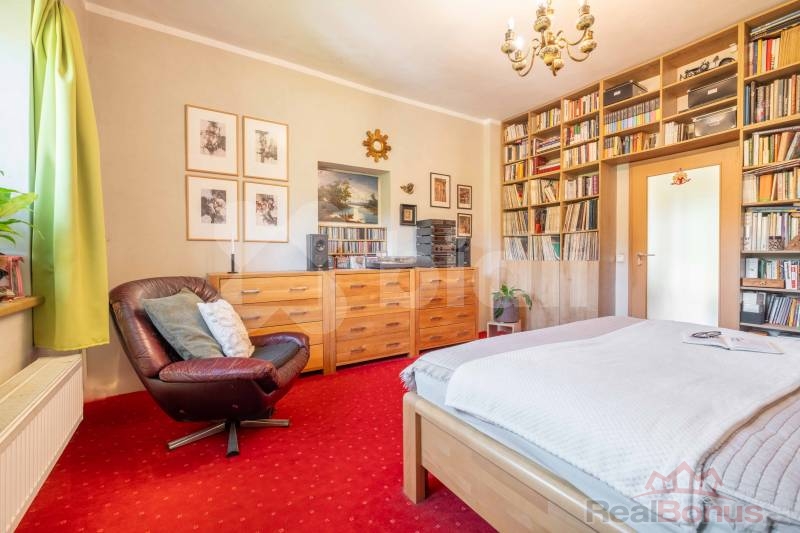 Momentálně dům je využíván z poloviny na bydlení, kde získáte zrenovovaný obytnou část s prostornou kuchyní, spojenou s jídelním koutem a obývací částí. Dále ložnice s krásnou knihovnou, vlastní větší šatna, koupelna s vanou včetně WC, vstup na menší balkón vám nabídne krásný pohled do udržované zahrady.