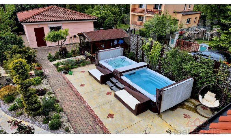 Součástí nemovitosti je krásně upravená zahrada o rozloze 1249 m2, která poskytuje dostatek soukromí a prostoru pro rodinný život, odpočinek i volnočasové aktivity. Na zahradě je také celoročně využitelný luxusní bazén a vířivka. Parkování je zajištěno jak v garáži na pozemku, tak i venkovními parkovacími místy přímo na pozemku.