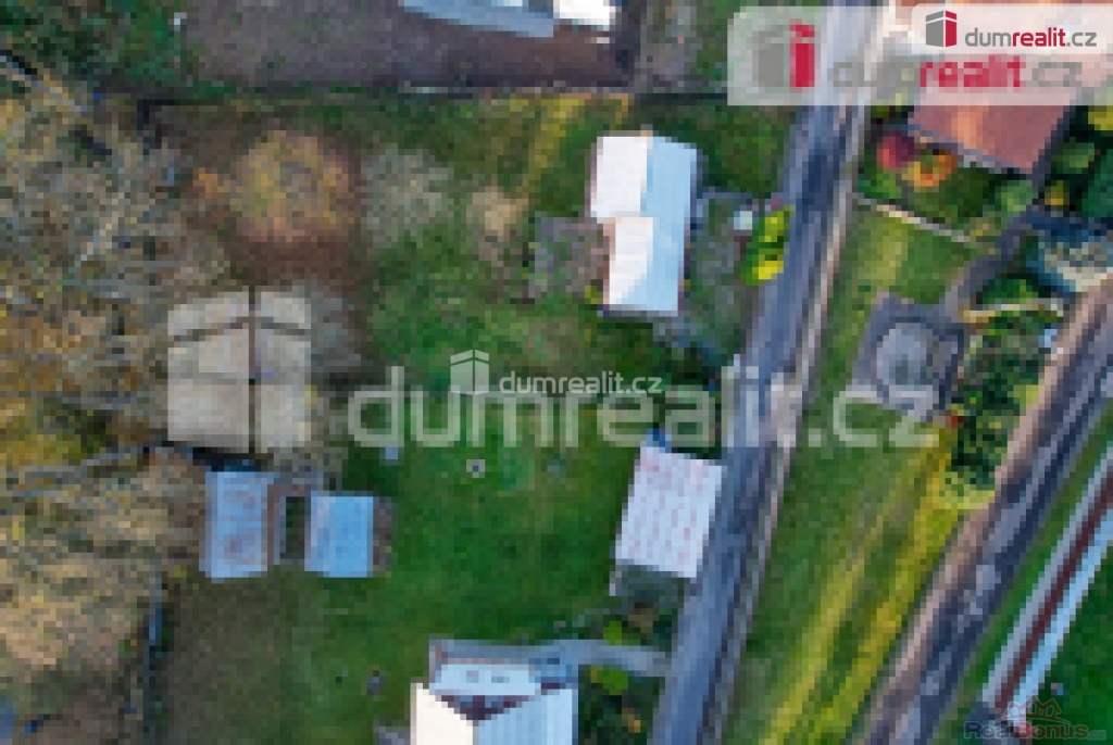 V zadní části zahrady se nachází prostorná kůlna, dřevěný suchý záchod a za plotem potok a rybník.