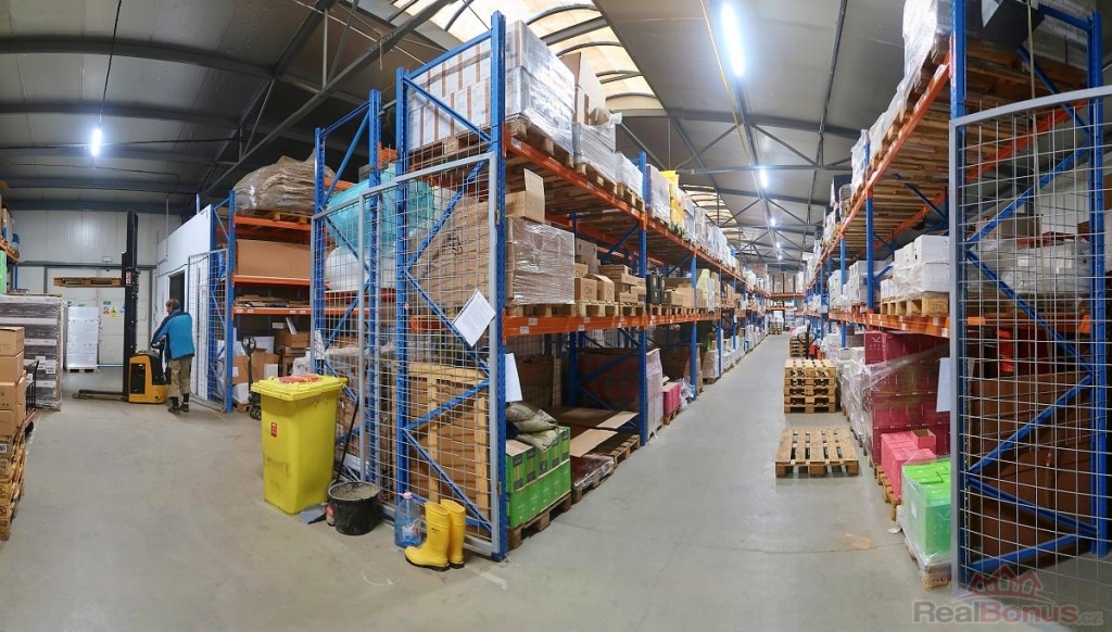 Hala je skladově-výrobní s plynovým topením a moderním osvětlením, vč. osvícení ramp (2x). Příjezd možný pro veškerou osobní i nákladní dopravu vč. TIR. Možnost parkování osobních automobilů na vlastním, oploceném pozemku až 7 míst. Jde o přízemní zateplenou halu z roku 1998. V hale regály až o kapacitě 700 EuPalet. Přístup zajišťují sekční vrata 3 x 3 m s vyústěním na kryté nákladové rampy pro Avii a TIR. Podlahy betonové s bezprašnou povrchovou úpravou a nosností 5 000 kg/m2. Využitelná výška haly činí 5 m, Osvětlení el. zářivkové a pomocí střešních světlíků. Vytápění zajišťují plynové zářiče s regulací - viz foto.