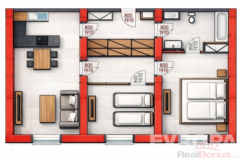 | Dispozice bytu | 3+kk |