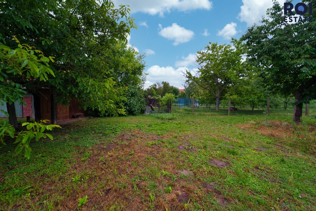 Průjezd u domu zajišťuje pohodlné parkování a přístup až na pozemek. A za domem? Tam se rozprostírá rozlehlá zahrada zalitá sluncem, plná vzrostlých ovocných stromů a keřů. Místo jako stvořené pro pěstování, relax i pro chov drobných zvířat.