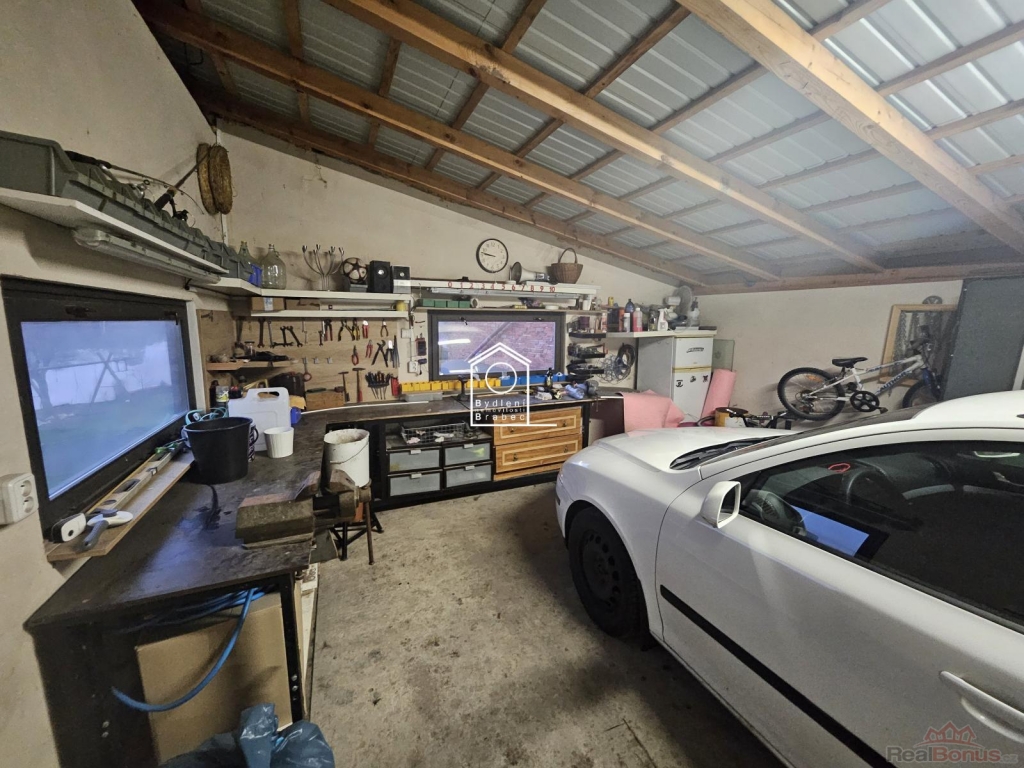 K dispozici je garáž pro dvě auta, dílna, kotelna a zahrada o rozloze 368 m. Majitel má oploceno a užívá dalších 250 m2 pozemku hraničících s břehem rybníka. Dům je také částečně podsklepený a ve sklepě se nachází studna.