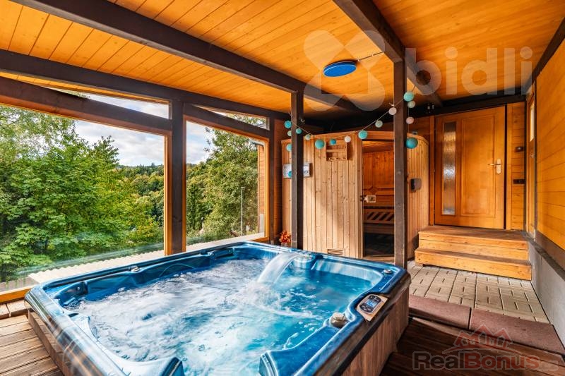 O relaxaci se postará vlastní wellness se saunou a vířivkou s výhledem do krajiny. V létě k posezení lákají dvě prostorné terasy, ideální pro grilování nebo odpočinek na slunci.