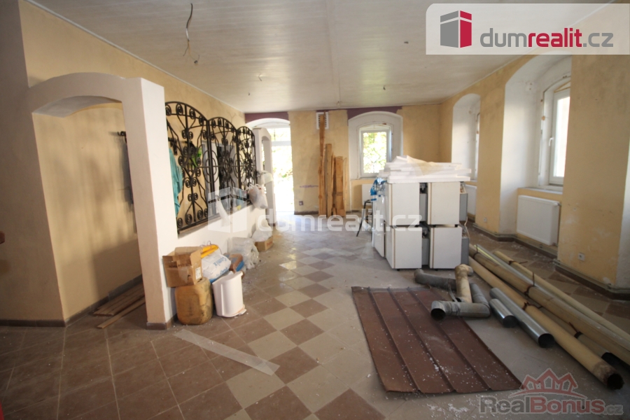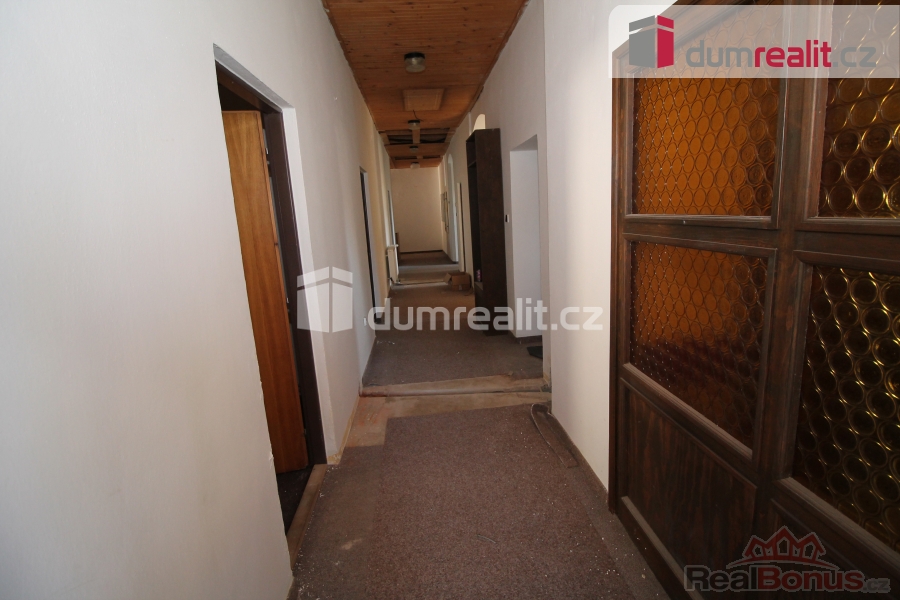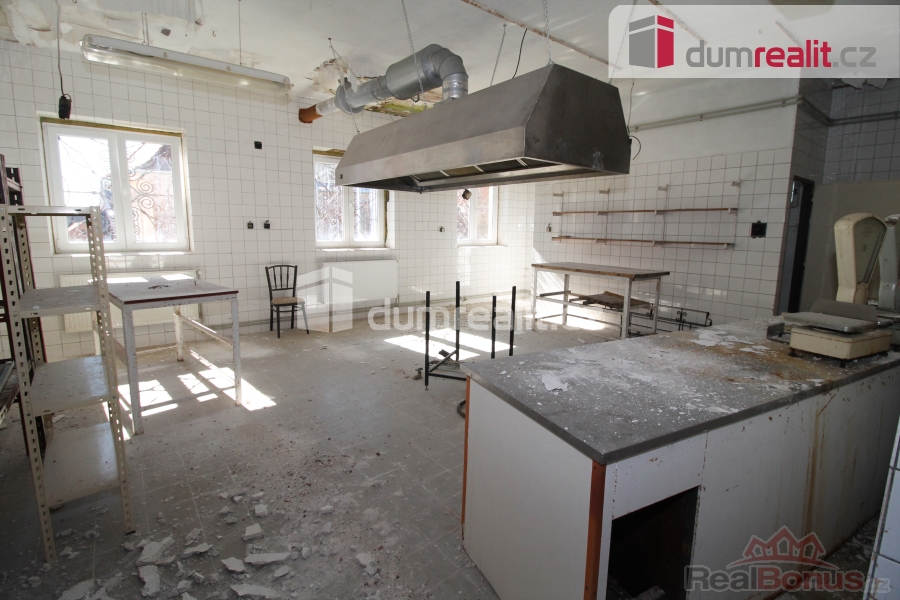 , Dumrealit.cz Vám zprostředkuje vyjímečnou příležitost koupě 1/2 domu vhodného na provozování pensionu, hotelu, ubytovny či dlouhodobých a krátkodobých pronájmů. Celková plocha objektu je cca 1385 m s tím, že každé patro nabízí 395 m, je zde 14 pokojů, každé se svým sociálním zařízením a navíc bytová jednotka 4+kk také se svou koupelnou, toaletou a technickou místností. Do objektu jsou zavedeny inženýrské sítě včetně vodovodu, kanalizace, elektřiny, plyn je na hraně pozemku. Vytápění je koncipováno na plynový kotel (není instalován) s tím, že v domě jsou kompletně nové rozvody topení (nejsou osazeny radiátory). V celém domě jsou plastová okna. Pozemek nabízí 395 m zastavěné plochy a 199 m tvoří oplocená zahrada, kde by byla ideální terasa pro venkovní posezení, je přístupná jak vchodem jak přímo z restaurace tak i z ulice. V přízemí objektu je hlavní vchod, restaurace, bar, prostor vhodný pro provozování vinárny, balneo procedur či kosmetiky, masáží, případně na jiné podnikání apod., dále je zde prostorná kuchyně. V prvním patře jsou pokoje a terasa, dále ve druhém patře jsou opět pokoje a byt 4+kk. V suterénu jsou mrazící místnosti, úložný prostor, technické místnosti, kde jsou umístěny bojlery na ohřev teplé vody, sklad, prádelna. V Lázních Kynžvart momentálně chybí restaurace, je zde poptávka po ubytovacích a stravovacích službách. Lázně Kynžvart byly vyhlášeny klimatickými lázněmi, vyvěrá zde několik léčivých pramenů, je zde bazén, sauna, možnost procházek. Pro děti je zde krásná pohádková cesta s několika stanovišti vedoucí lesem, fitness hřiště, v blízkosti je supermarket Coop. V Lázních Kynžvart je krásný hojně navštěvovaný státní zámek Metternich a golfové hřiště, které celoročně lákají turisty z celé ČR což tvoří základ pro dobou návštěvnost. Parkování je možné na přilehlém parkovišti naproti objektu. Do deseti minut jízdy jsou vzdáleny Mariánské Lázně, které se staly součástí kulturního dědictví UNESCO. Zde je veškerá občanská vybavenost, supermarkety, úřady, banky a další. V okolí Kynžvartu je bezpočet turistických tras vedoucích na např. Kladskou, Prameny, přírodní rezervaci Vlček, Smraďoch, horu Dyleň (údajné centrum Evropy), trasy pokračují po perfektních cyklostezkách dále do Německa. Cena zahrnuje provizi a právní servis. Ev. číslo: 653004. Energetický štítek: G (112 kWh/m2/rok).