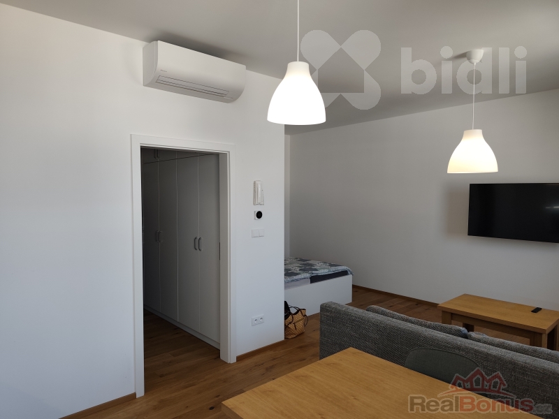 Nabízíme k pronájmu luxusní, moderně řešený byt 1+kk, který zaujme svým designem i praktickým uspořádáním. Byt se nachází v 6. patře moderní budovy s výtahem a nabízí příjemný výhled na město. Interiér je promyšlený do detailu a plně vybavený - stačí si přinést osobní věci a můžete ihned bydlet bez dalších investic. Samozřejmostí je moderní koupelna se sprchovým koutem.
