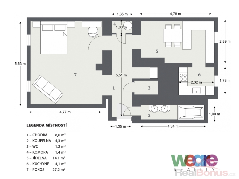 | Dispozice bytu | 2+kk |