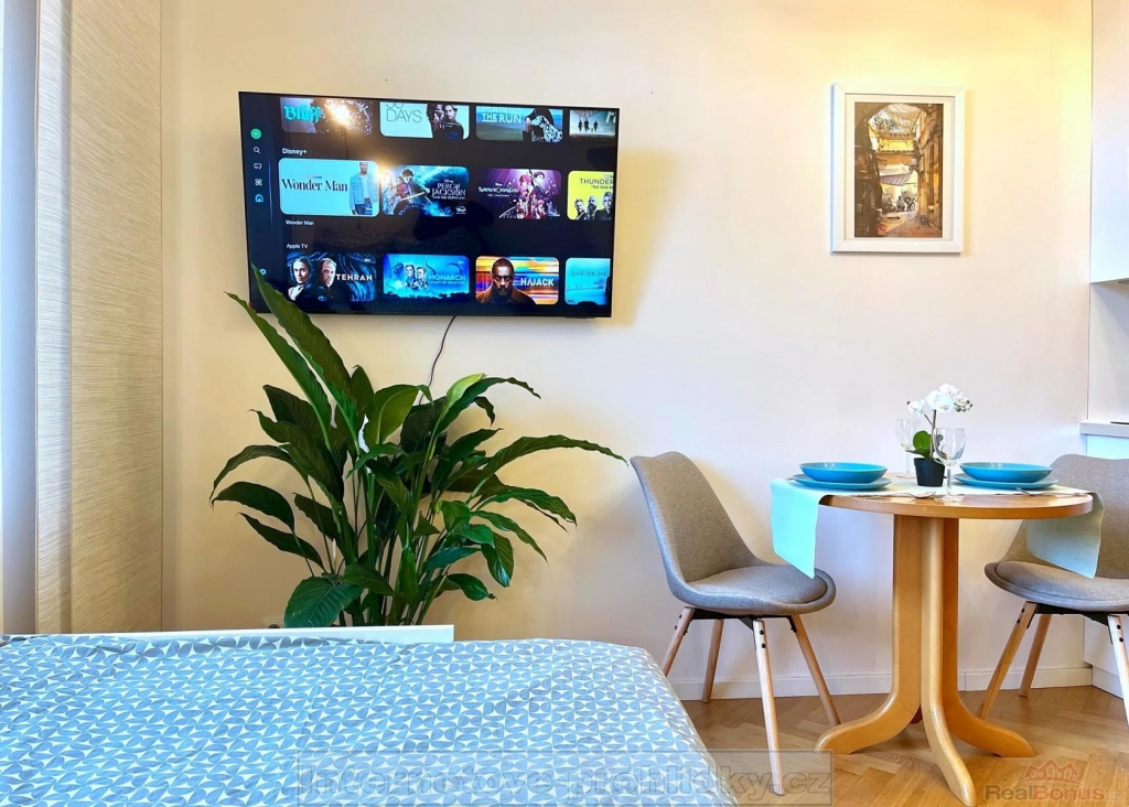 Byt o dispozici 1+kk s obytnou plochou 23 m and sup2; se nachází ve 2. nadzemním podlaží (1. patro) s výtahem.Interiér bytu je prakticky řešený a plně vybavený. K dispozici je kuchyňská linka s indukční varnou deskou, elektrickou troubou a vestavěnou lednicí. Pro práci z domova oceníte pracovní desku spolu s designovou knihovnou, které byly navrženy na míru pro pohodlný home office. Spaní je řešeno chytrou, nastavitelnou postelí, kterou lze snadno upravit na plnohodnotné dvojlůžko. Cena 21000Kč + služby 960Kč, energie se převádí na najemníka, vratná kauce 22000Kč, provize 22000Kč.