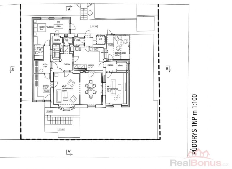 Veškeré ostatní části domu jsou připraveny k dokončení dle záměru nového vlastníka. To umožňuje přizpůsobit finální podobu nemovitosti vlastním představám, ať už půjde o velkorysé rodinné bydlení, vícegenerační užívání, nebo reprezentativní vilu s vysokým standardem.