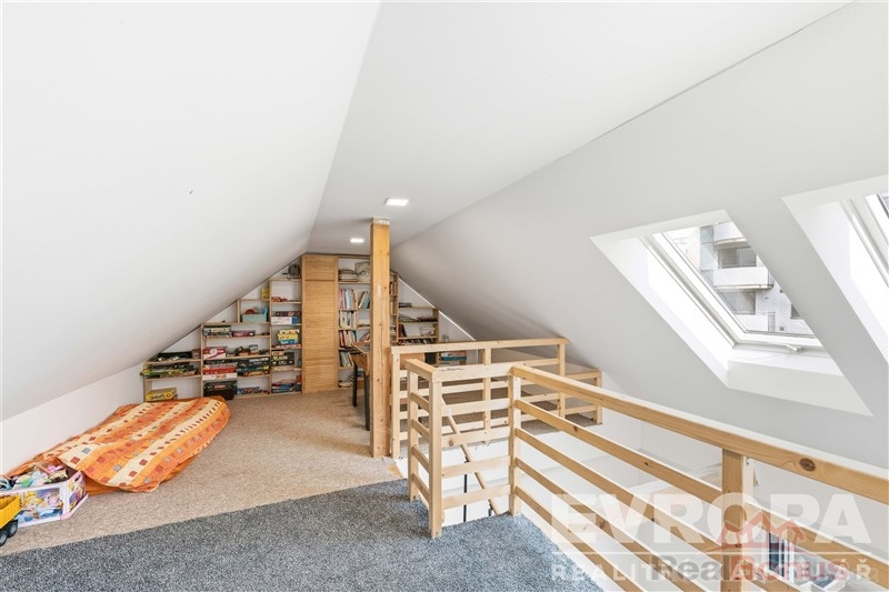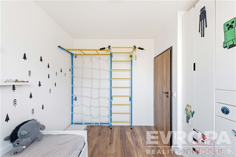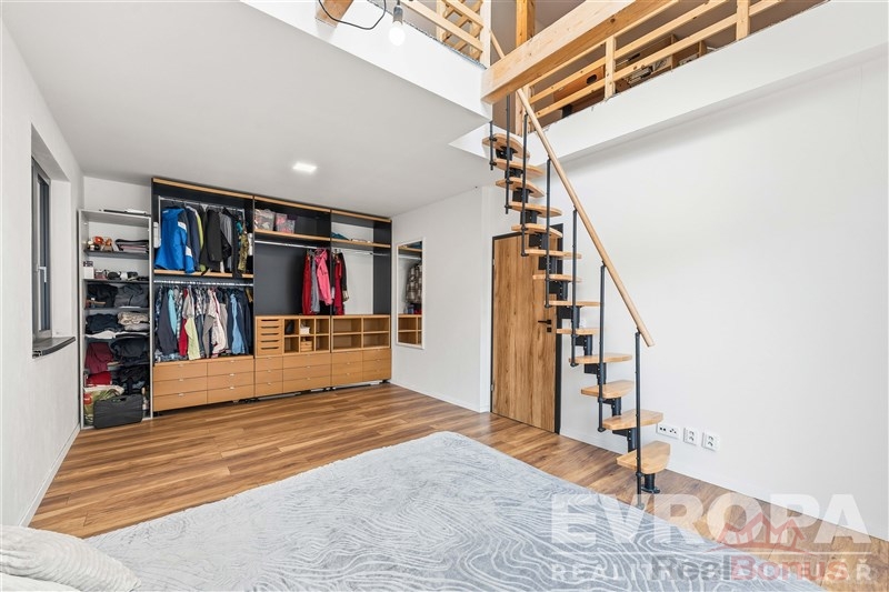 1.Patro: chodba, 2 dětské pokoje, koupelna s vanou, samostatné WC, technická místnost, velká ložnice s mezonetovým patrem (otevřené podkroví)