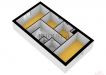 1. NP: zádveří, chodba, obývací pokoj s kuchyňským koutem a vstupem na terasu, kuchyň, dětský pokoj, ložnice, koupelna s vanou, samostatná toaleta