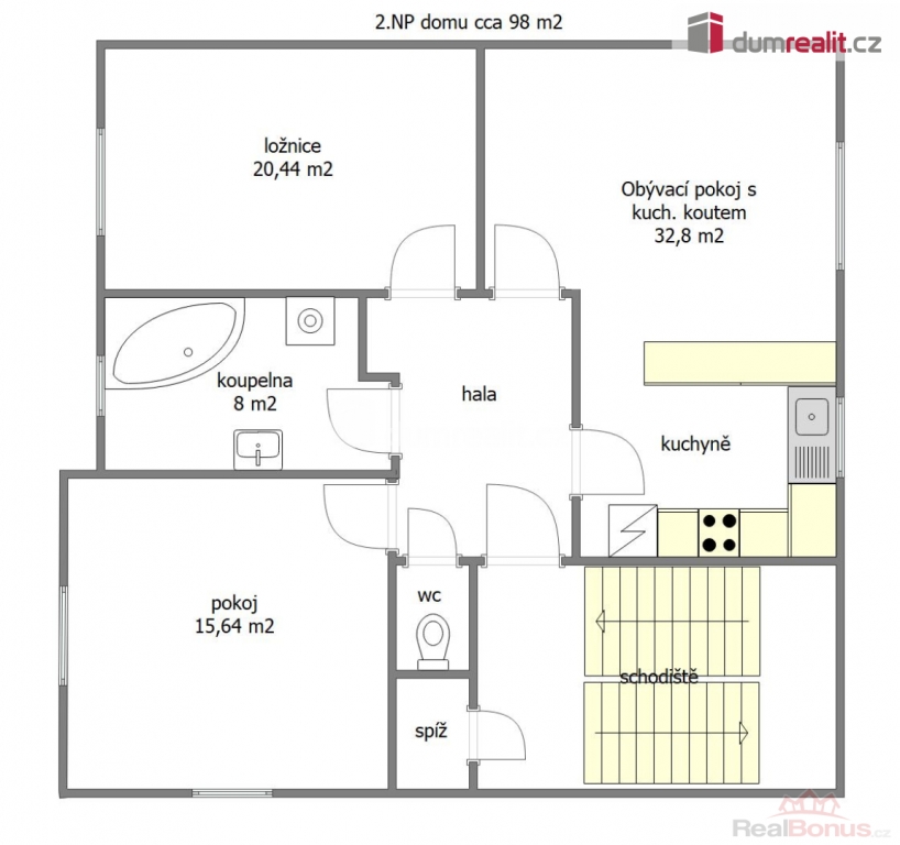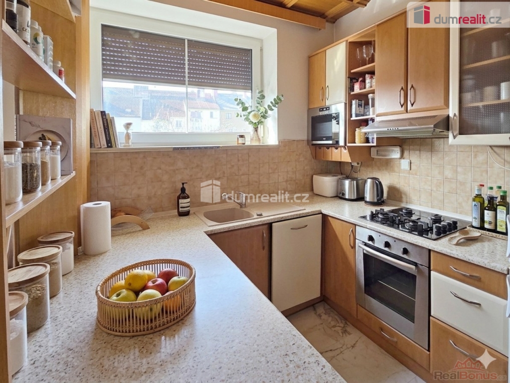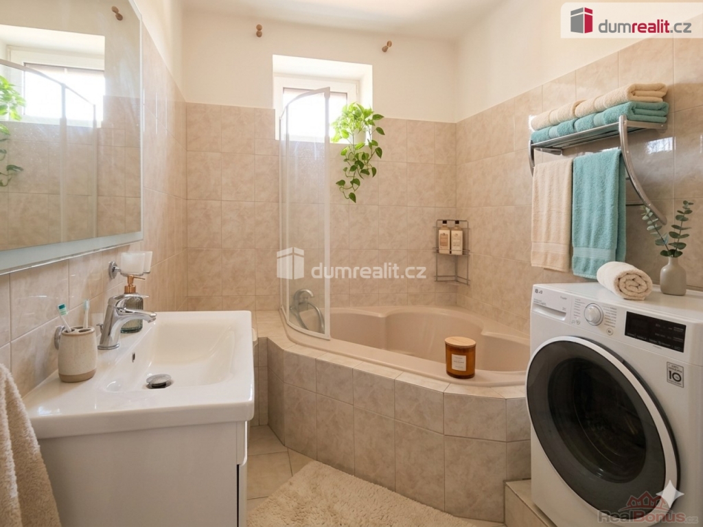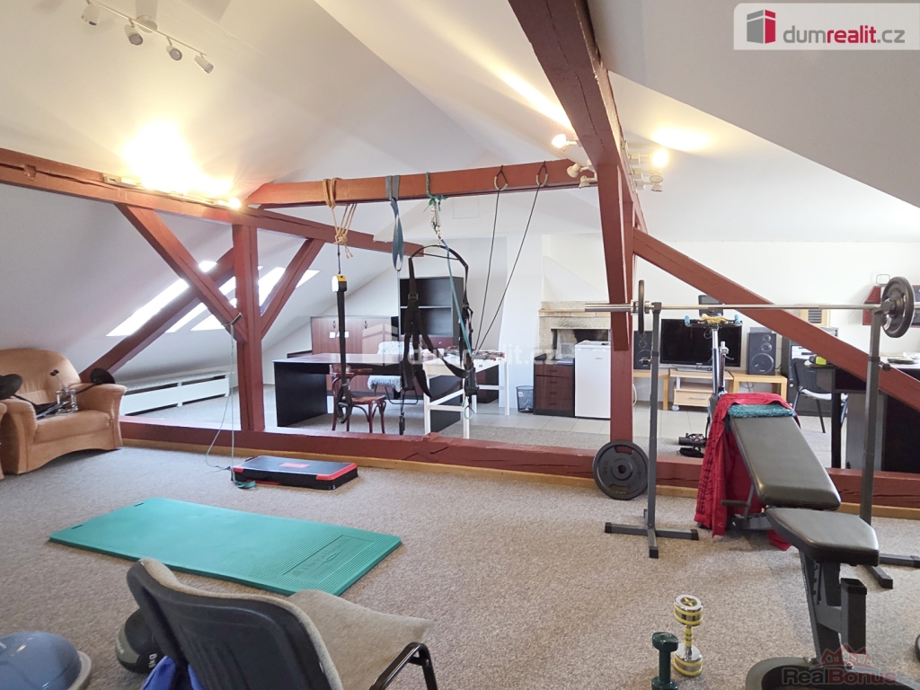 Podkroví: Horní část tvoří příjemná denní místnost prosvětlená střešními okny a druhá koupelna s toaletou. Celý byt je přístupný po vnitřním schodišti.