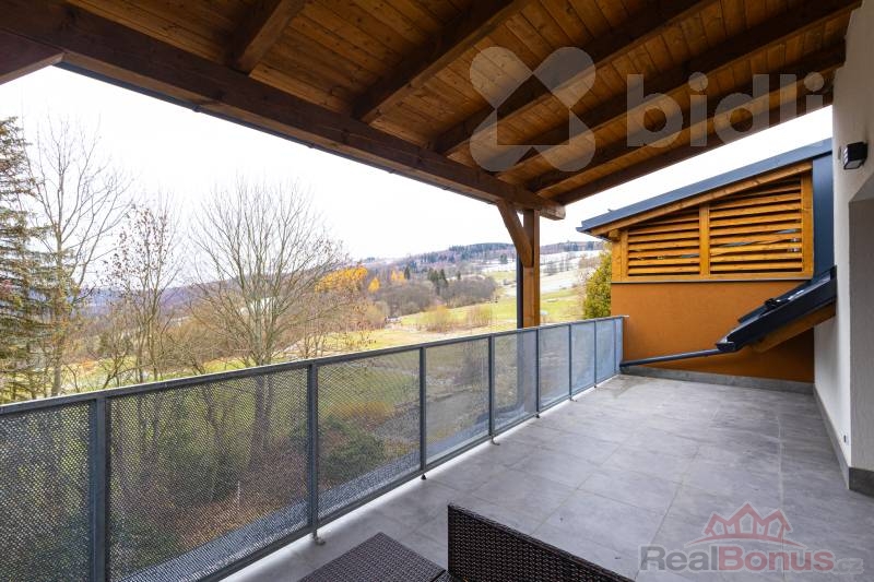 Dovolujeme si vám nabídnout dva apartmány: 1+kk: Nabízíme k prodeji moderní apartmánový byt situovaný v 2NP revitalizovaného bytového domu s výtahem, který se nachází v malebném podhorském městě Vrbno pod Pradědem. Dům je energeticky nenáročný a poskytuje svým obyvatelům komfortní a úsporné bydlení v těsné blízkosti přírody. Apartmán je orientovaný na západ, díky čemuž nabízí krásné výhledy na okolní přírodu a dokonalé večerní atmosféry na prostorné z části kryté střechou terase. Interiér je nadčasově a velmi kvalitně vybaven, a to včetně moderního systému podlahového vytápění s možností dálkového ovládání. Stejně tak je i vstup do apartmánu řešen chytrým kódovým zámkem, ideálním v případě využití nemovitosti k rekreačním pronájmům. Stejně tak i k trvalému bydlení.