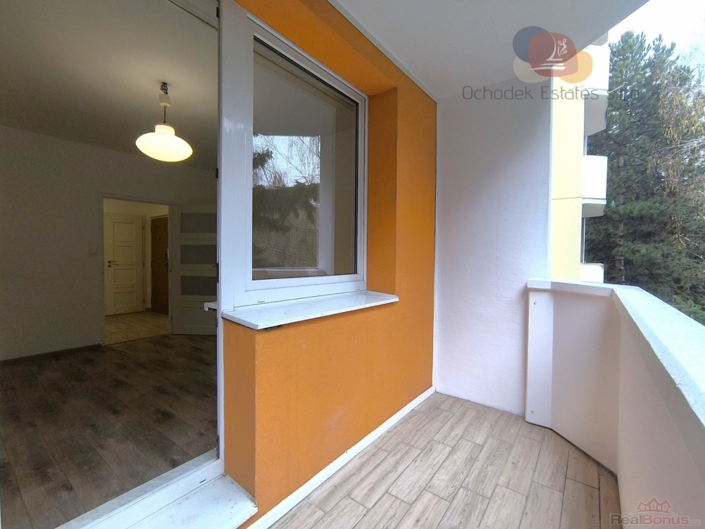 Jsou zde dva neprůchozí pokoje z nichž je jeden i s velkým balkonem orientovaným na jižní stranu. A díky vzrostlým stromům se na něm ani v horkém létě neupečete. Kuchyň je dělaná na míru včetně skříňové spíže. Koupelna je upravena tak, aby tu bylo i místo na velkou pračku.