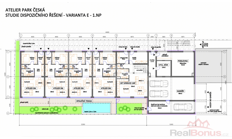 Možné postavit: komerční objekt s jedním bytem (domem) správce, vhodné na bydlení spojené s podnikáním, nebo i pro developera na dodatečnou realizaci projektu.