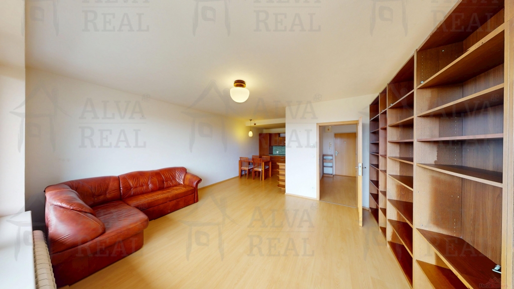 Vybavení bytu: kuchyňská linka vč. spotřebičů (el. trouba s varnou deskou, digestoř, vestavěná lednice, mikrovlnná trouba), v obývacím pokoji vestavěná knihovna, rohová pohovka a křesla, v ložnici manželská postel a šatní skříň, v koupelně pračka.
