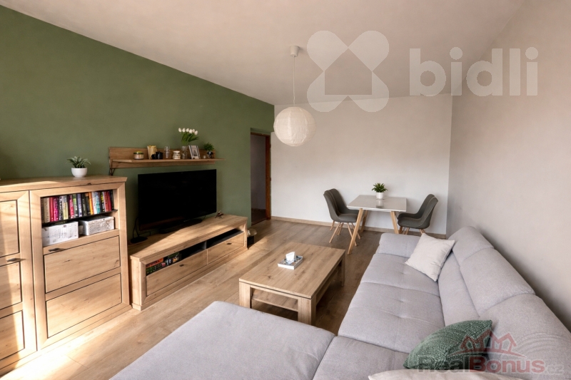 Dispozice bytu je prakticky řešená - nabízí samostatný obývací pokoj, ložnici a oddělenou kuchyni. Koupelna disponuje vanou a toaleta je řešena samostatně, což zvyšuje komfort každodenního fungování. Interiér působí světlým a udržovaným dojmem, zároveň je byt částečně vybavený, takže si ho může nový majitel snadno doladit podle vlastního stylu.