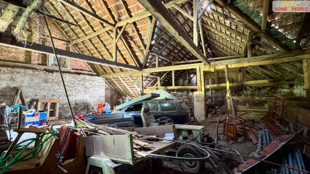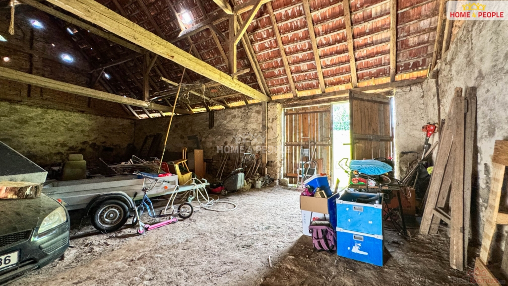 Součástí nemovitosti je uzavřený dvůr, který poskytuje dostatek soukromí, a velká hospodářská stodola s průchodem na zahradu ideální pro chov zvířat, dílnu nebo skladování.