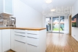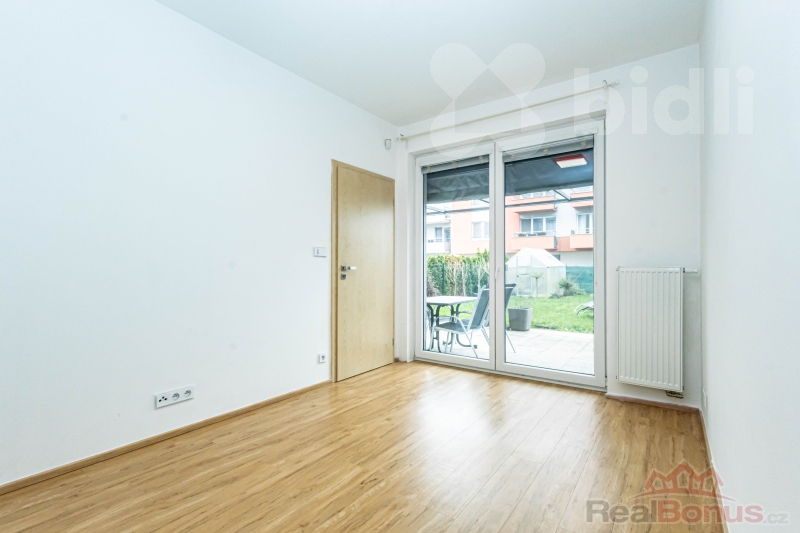 Dominantou bytu je obývací část s kuchyňským koutem, odkud je přímý vstup na terasu a navazující zahradu. Ta nabízí příjemné soukromí a výrazně rozšiřuje obytný prostor - ideální místo pro každodenní relax, posezení s přáteli nebo klidné ráno s kávou. Díky orientaci do vnitrobloku působí celý prostor klidně a odděleně od okolního ruchu.