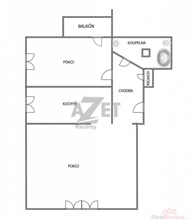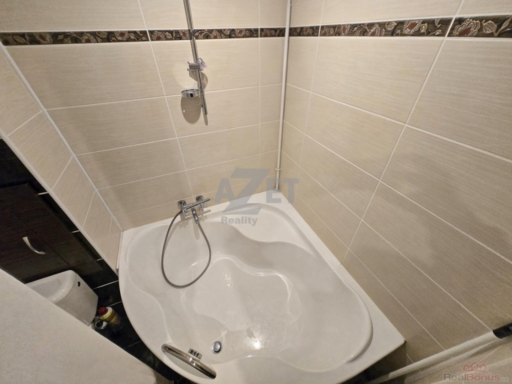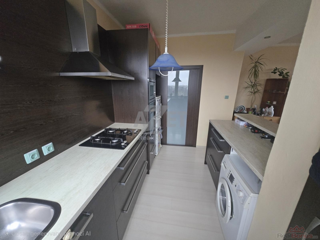 Dispozice: prostorný pokoj s plovoucí podlahou, samostatná kuchyň, koupelna s rohovou vanou se zděným jádrem.