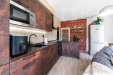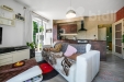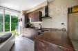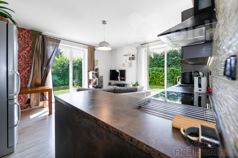 Byt je velmi vkusně řešený - kuchyňská linka Oresi je vyrobena na míru a nabízí dostatek úložného i pracovního prostoru. Otevřený obývací prostor s kuchyní a jídelním koutem plynule navazuje na venkovní část.