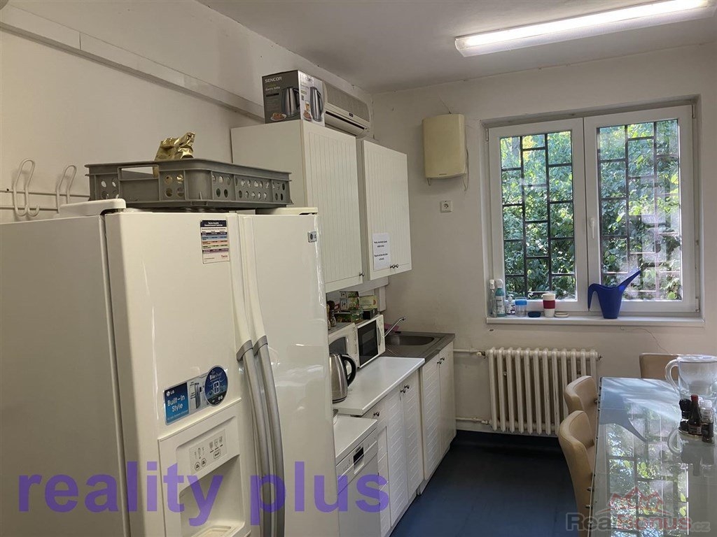 Pronájem kanceláří v ulici Služeb, v Praze 10 - Strašnice. Objekt se nachází ve vzdálenosti cca 150 m od konečné stanici metra A - Depo Hostivař + MHD (tramvaje, autobusy). Nabízíme k pronájmu kanceláře o výměře 551 m2 v 1. patře administrativní budovy s výtahem, které tvoří ucelený celek (celé první patro). Nebytové prostory se skládají z 16 kanceláří, sociálního zázemí, skladu a kuchyňky. Kancelářské prostory mohou být pronajaty jako celek, nebo rozděleny jednotlivě. Objekt je přístupný nepřetržitě s recepcí. Kanceláře se pronajímají nezařízené, na podlahách jsou koberce a PVC. Služby, voda, teplo, odvoz odpadu, zabezpečení objektu, se platí paušálem 41.325,- Kč měsíčně. Spotřeba elektrické energie bude přefakturována dle skutečných nákladů. Parkování až pro 14 automobilů je možné v areálu dle dohody za dohodnutou cenu parkovného (5.000,- Kč/osobní auto/rok). Volné od května 2025. Provize RK 110.200,- Kč. Všechny ceny jsou uvedeny bez DPH! Při podpisu nájemní smlouvy se hradí vratná kauce ve výši měsíčního nájmu a služeb. Bližší info u makléře. ET-G.