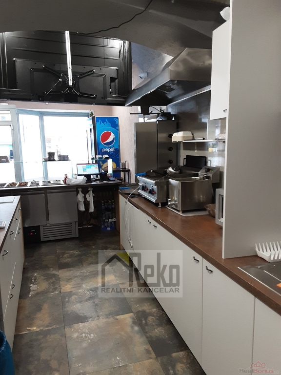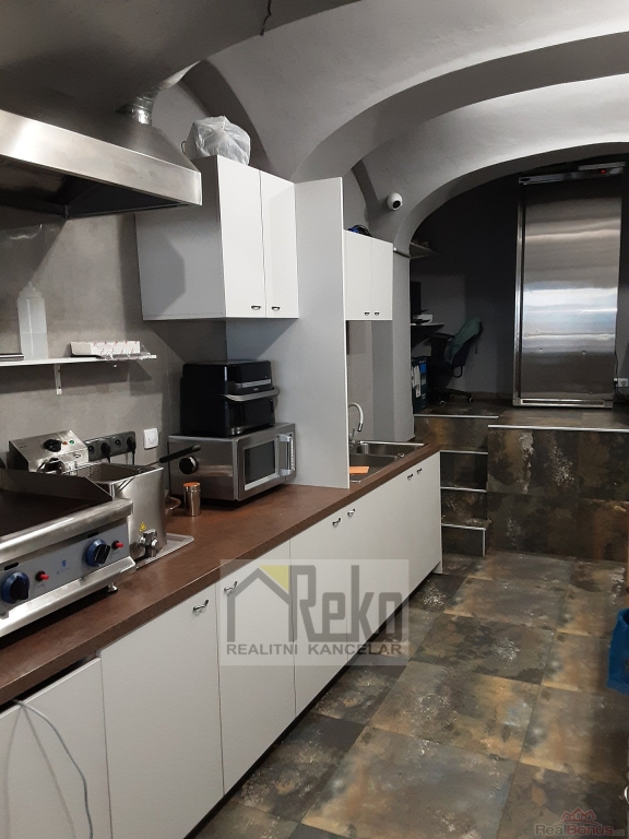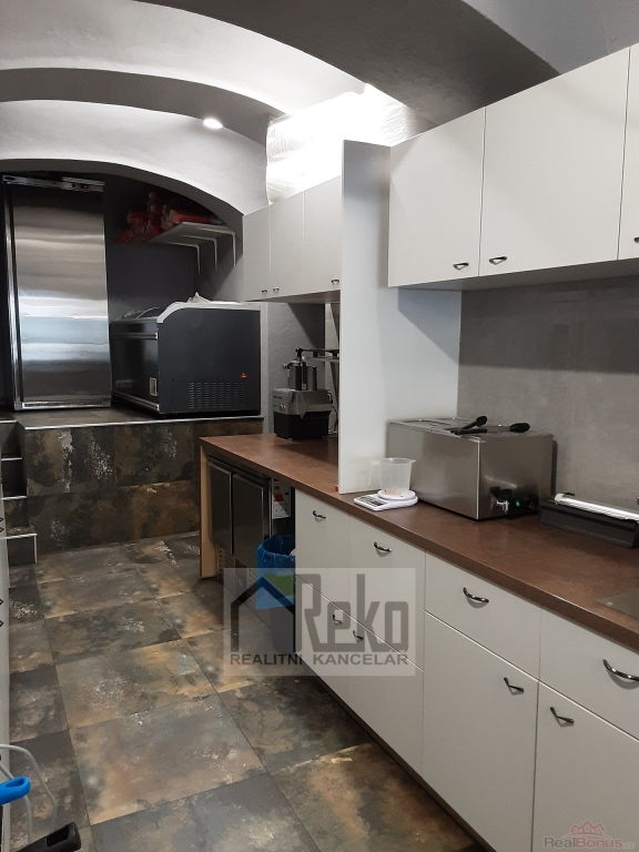 Jedná se o zavedené bistro rychlého občerstvení, které současný nájemce přenechá za úplatu 1.250.000,-Kč. Prostory s výměrou 50,5 m2 jsou po kompletní rekonstrukci (stěny, obklady, podlahy, odpady, gastronomické zařízení). Prostor je rozdělen na prodejní místo s možností posezení, dále na přípravnu, sociální zázemí (WC s umyvadlem) a úklidovou místnost s výlevkou. Veškeré zařízení a vybavení je v ceně úplaty. Do těchto prostor jsou dva přístupy, jeden z ulice a druhý ze dvora, kde lze parkovat s jedním autem a zároveň odtud přebírat zboží.
