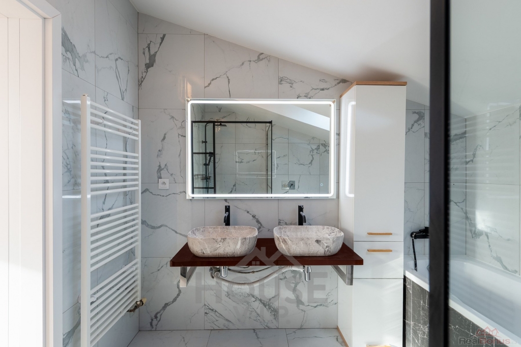 V obou koupelnách je bezbariérový sprchový kout a nadstandardní keramická dlažba a sanita. Jedna z koupelen disponuje také vanou.