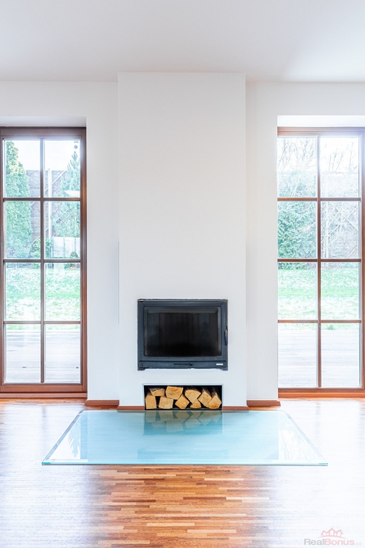 V 1.NP se nachází předsíň s vestavěnou skříní, toaleta, kuchyně se spižírnou, obývací pokoj s krbem a vstupem na terasu, dále garáž s přímým propojením (tzv. suchou nohou) s domem. Kuchyně je vybavena kuchyňskou linkou včetně spotřebičů (vestavěná lednice a mrazák, vestavěná trouba a mikrovlnná trouba, varná deska, digestoř a myčka).