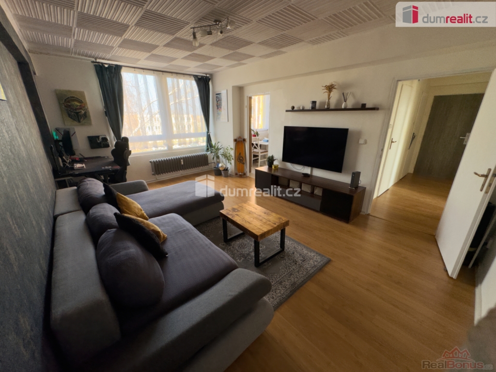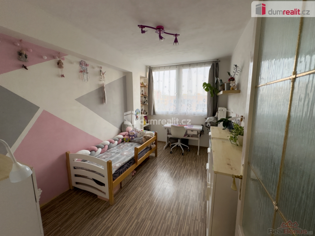 , Dumrealit.cz Vám zprostředkuje prodej bytu 3+1 s lodžii o celkové ploše 63 m. Byt se nachází v panelovém domě ve 4 NP. Nová zateplená fasáda, plastová okna, nové stoupačky. Dispozice: komunikační chodba, pokojíček, ložnice s lodžii, obývací pokoj a kuchyň. Zděné jádro s vanou, umyvadlem a místem pro pračku. WC je zde samostatné. Byt prošel zdařilou rekonstrukci. Topení je dálkové. K bytu náleží sklep. Měsíční náklady na bydlení 6.200,- Kč ( počítáno pro 3 osoby ) z toho 917,- Kč činí fond oprav. Velmi čistý a pohledný dům. Hodně zeleně a přírody v blízkém okolí. dětské hřiště, poliklinika, školka, škola, obchody. Veškeré informace k nemovitosti Vám velmi rád sdělím telefonicky či osobně při prohlídce. Neváhejte mě kontaktovat. Budu se těšit na viděnou při prohlídkách. Ev. číslo: 655207. Energetický štítek: G