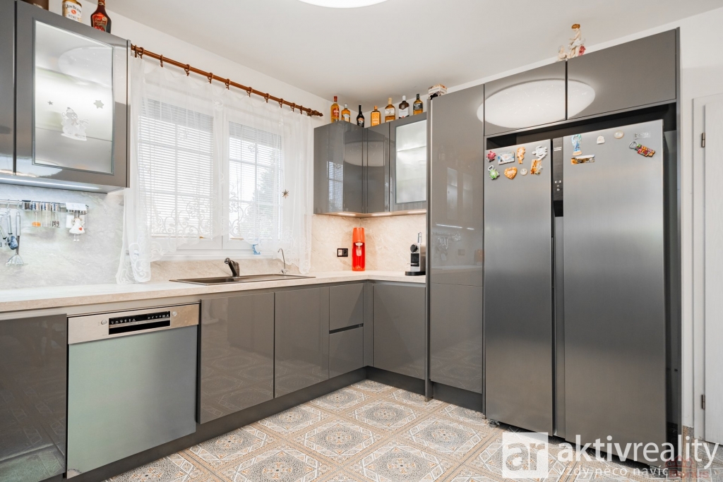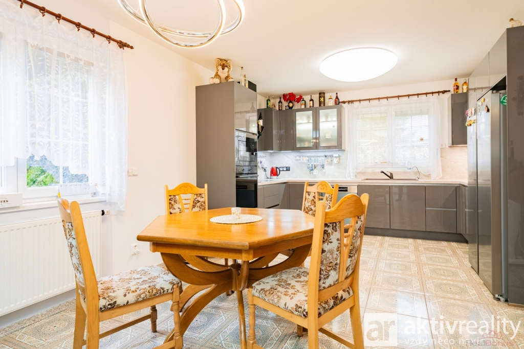 Interiér domu působí velmi příjemně a je připraven k okamžitému užívání. Kuchyňská linka byla instalována přibližně před rokem a je plně vybavena spotřebiči značky Gorenje. Okna jsou plastová s dvojskly, doplněná žaluziemi a sítěmi proti hmyzu, v přízemí jsou navíc instalovány venkovní rolety. Střešní okna jsou vybavena roletami a dveře vedoucí na terasu disponují trojskly.