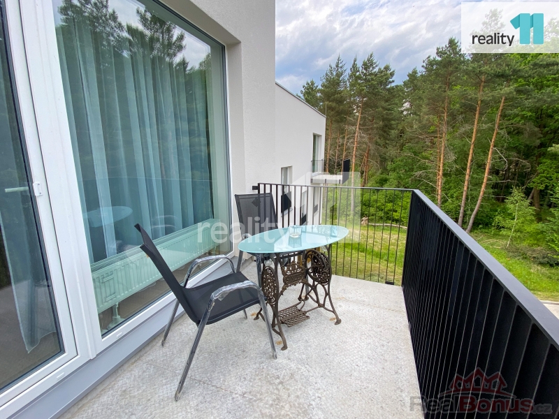 , Reality 11 Vám zprostředkují pronájem nové bytové jednotky 1+kk o užitné ploše 30 m s prostorným balkónem o výměře 6 m s krásným výhledem do lesa (v následujících letech není podle developera do výhledu plánována žádná další výstavba). Byt se nachází ve 3. NP a náleží k němu sklepní kóje (2 m) v přízemí a vyhrazené venkovní parkovací stání před domem.