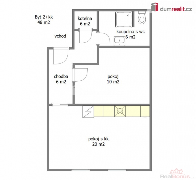 | Dispozice bytu | 2+kk |