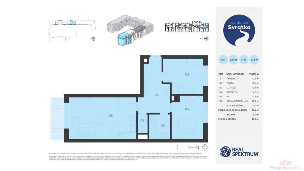 celková plocha: 77,4 m2 včetně balkonu