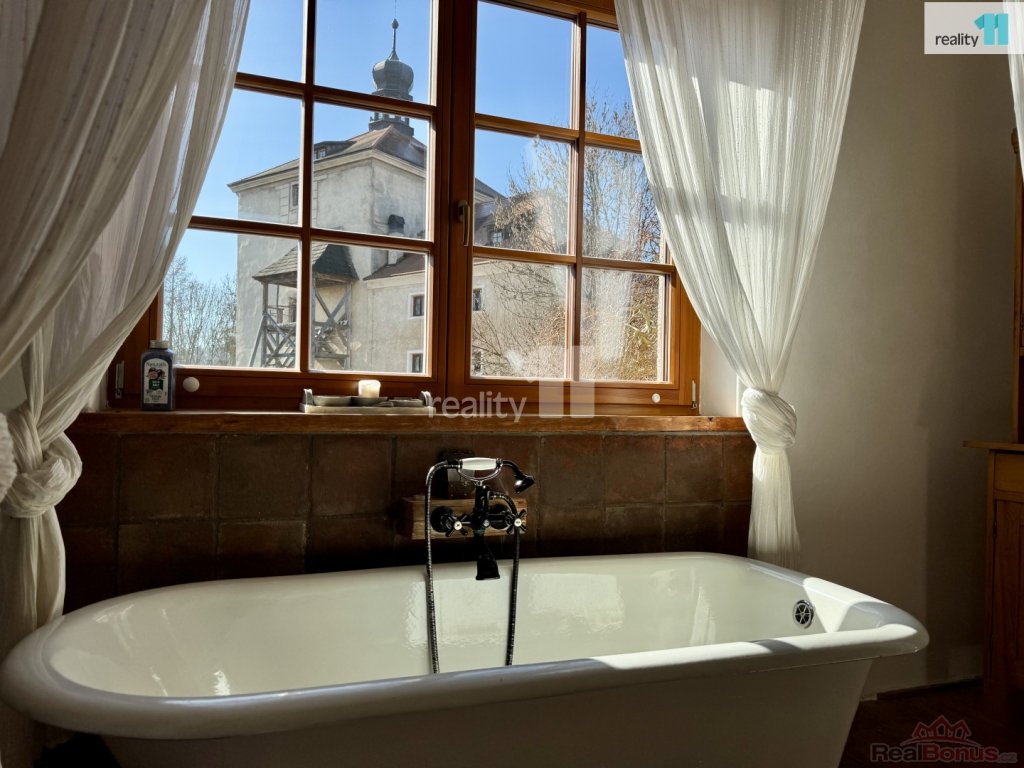 První jednotka je romanticky laděná, s vanou a výhledem na středověkou tvrz Malešov.