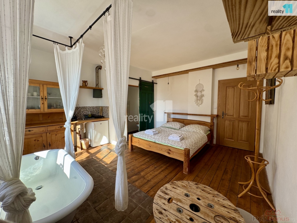 Na patře se nachází také byt 1+1, který lze využít jako další ubytovací jednotku, dlouhodobý pronájem nebo vlastní zázemí.