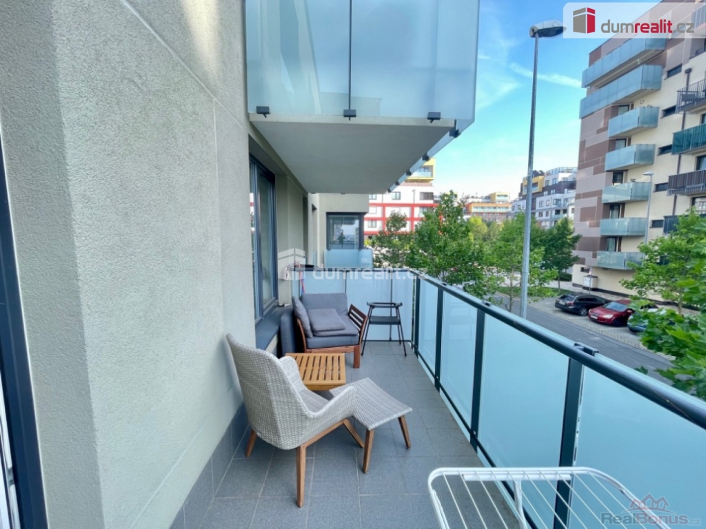 +popl. 5500, , pronájem moderního vzdušného bytu 2+KK o výměře 57,5 m s balkonem 9 m, ve velmi žádané lokalitě. Byt se skládá ze vstupní chodby, koupelny s wc a bidetem, obývacím pokojem s kuchyňským koutem a samostatné místnosti. Z obýváku vchod na prostorný balkón. Celý dům je velmi moderně a prakticky uspořádaný.