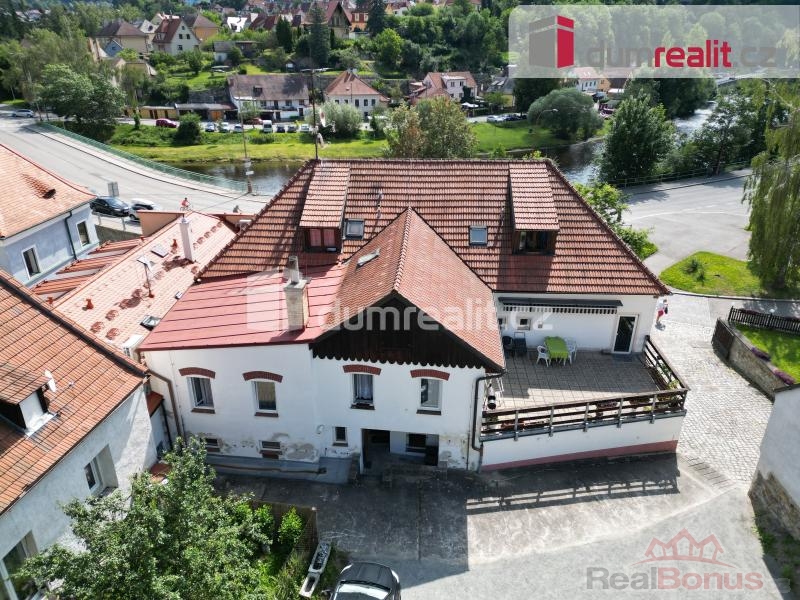 , Dumrealit.cz Vám zprostředkuje ve výhradním zastoupení prodej bytového domu v Českém Krumlově. Bývalý zájezdní hostinec je přestavěn na třípodlažní objekt s komerčními prostory v přízemí o půdorysu 310 m. Dispozice bytů v 1. patře a podkroví jsou 2x 2+1, 1x 3+1 s terasou a 2x 2kk. Byty i komerční prostory jsou trvale pronajaty v současné době biopotravinám a zoo potřebám. Vytápění je zajištěno plynem novými rozvody, okna jsou plastová. Částečně podsklepený dům navazuje na zahradu s penzionem, který není součástí prodeje. Poloha domu na levém břehu Vltavy v širším centru města zaručuje dostatek klidu, ale zároveň docházkovou vzdálenost do historického centra. Český Krumlov zapsaný na seznam UNESCO je zaručenou investicí do nemovitostí, jejichž hodnota je vždy určena lokalitou. Více informací v RK, která zajišťuje finanční i právní servis. Ev. číslo: 654533. Energetický štítek: E