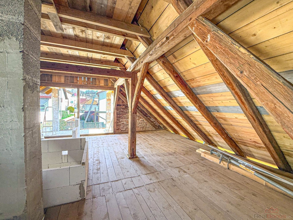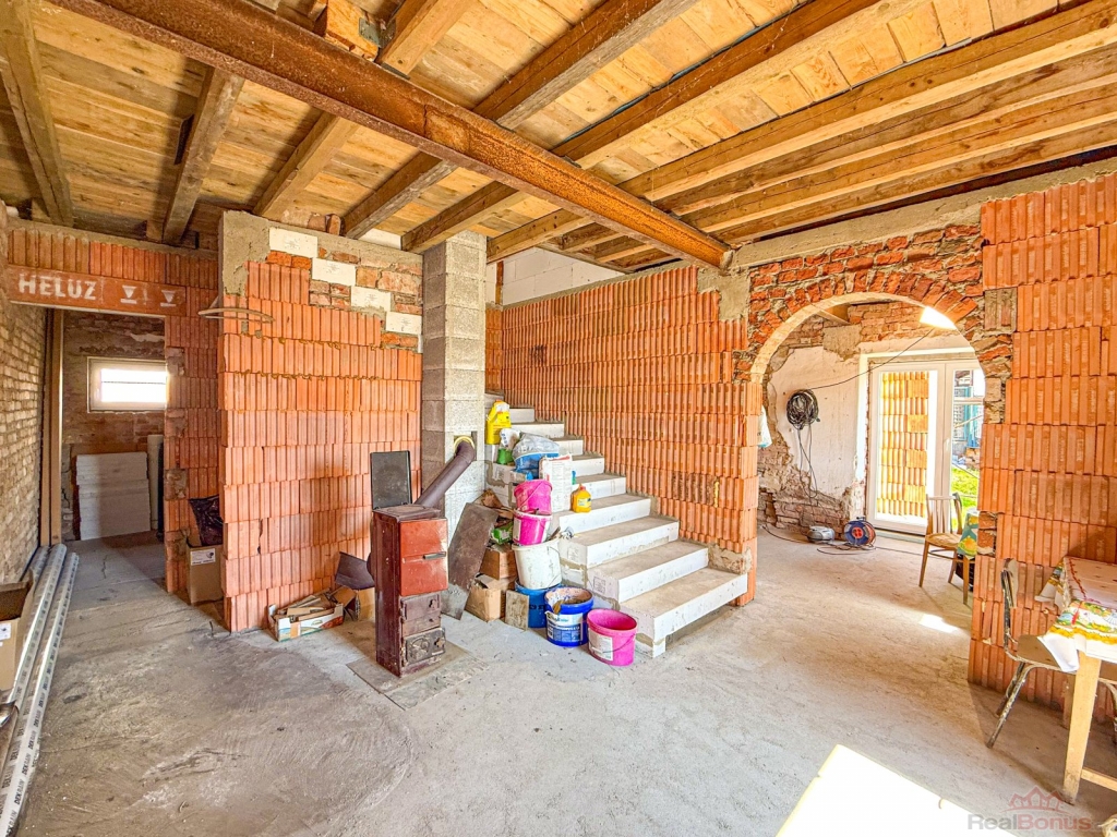 Dům má novou střešní krytinu a již byly provedeny důležité stavební práce, jako jsou kompletní izolace zdí, podkladní betony, nový komín, schodiště a rozvody odpadů. Nemovitost je napojena na obecní vodovod, kanalizaci a plynovod. K dispozici je platné stavební povolení, plány i vizualizace.