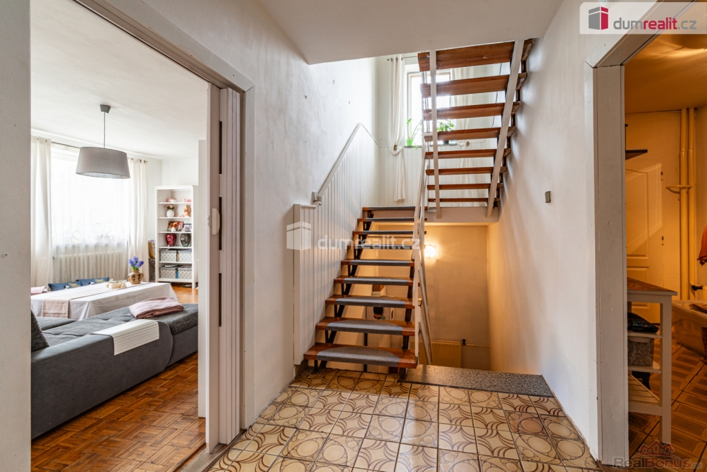 , Dumrealit.cz Vám zprostředkuje koupi vícegeneračního cihlového krajního řadového rodinného domu v širším centru Chebu o dispozici 5+1 se zahradou, garáží, sklepem a terasou, který umožňuje přestavbu na dvougenerační bydlení. Dům, který obklopuje pozemek o celkové rozloze 444 m je vhodný jak pro velkou rodinu tak pro někoho, kdo potřebuje mít u sebe své blízké. Kvalitní cihlová podsklepená budova (postavená před cca 40 lety) se rozkládá ve třech podlažích o celkové rozloze cca 180 m. V přízemí vejdeme z předsíně do chodby a dále do vzdušného obývacího pokoje, který by se dal propojit s kuchyní (nyní je oddělený a kuchyně je samostatná) odkud se vchází na terasu a do zahrady. Kuchyně s jídelním koutem je také velmi prostorná. V přízemí je k dispozici toaleta. V prvním patře jsou čtyři ložnice, z nichž u jedné je balkon, každý pokoj je samostatně přístupný z chodby, je zde koupelna s další toaletou a vanou. V suterénu je velká garáž (pro až 2 automobily), další parkovací místo je před garáží a samozřejmě před domem (před domem může parkovat až 5 automobilů). V okolí je všeobecně dobré parkování. Dále je v suterénu technická místnost s elektrickým kotlem, dílna, sušárna, potravinová komora a další úložný prostor. Ze sklepa je možné vyjít dozadu na zahradu, dům má tedy celkem tři vchody. Nemovitost je velmi dobře udržovaná, byť již vyžaduje modernizaci a rekonstrukci. Střecha je plechová (zateplená), okna jsou původní dřevěná špaletová (v patře jsou dvě nová plastová), radiátory jsou litinové. Budova je napojena na všechny inženýrské sítě včetně plynu (je zaveden na okraj pozemku), elektřiny, vodovodního řadu a kanalizace. K domu náleží zahrada o velikosti 342 m (plus zastavěná plocha 102 m - celkem tedy 444 m), která poskytuje místo pro relaxaci, rostou zde třešně, hrušky a výborná jablka. Dům je ideální svou polohou, v klidné rezidenční čtvrti se slušnými sousedy. V Chebu je veškerá občanská vybavenost včetně OC Pivovarská (Sportisimo, DM, Kaufland, JYSK, Takko, Gate, železářství, Dr. Max, elektro) OC Dragounská (Albert, New Yorker, Tedy), supermarketů včetně Tesca, Sinsay, nádraží, pošty, supermarketů LIDL atd.., nedaleko je také Svatý kříž s mnoha obchody včetně Travel Free. Cheb nabízí kompletně opravené náměstí, kde najdete vyhlášené restaurace Hvězdu či U Krále Jiřího, banky, úřady, obchody, městský úřad, občerstvení apod., příjemně se dá trávit čas v kulturně-historické památce komplexu chebského hradu, na který navazuje vyhlášený krásný sportovní volnočasový areál s parkem Krajinka. V Chebu je několik nádherných kostelů včetně kostelu sv. Mikuláše a Alžběty. Město se nachází 9 km od Německa, kde je jak možnost výhodných nákupů tak finančně zajímavého pracovního uplatnění. Na nemovitosti neváznou žádná omezení, věcná břemena, zástavy ani nároky třetích osob. Cena zahrnuje provizi RK a veškerý právní servis. Ev. číslo: 655174. Energetický štítek: G (20 kWh/m2/rok).