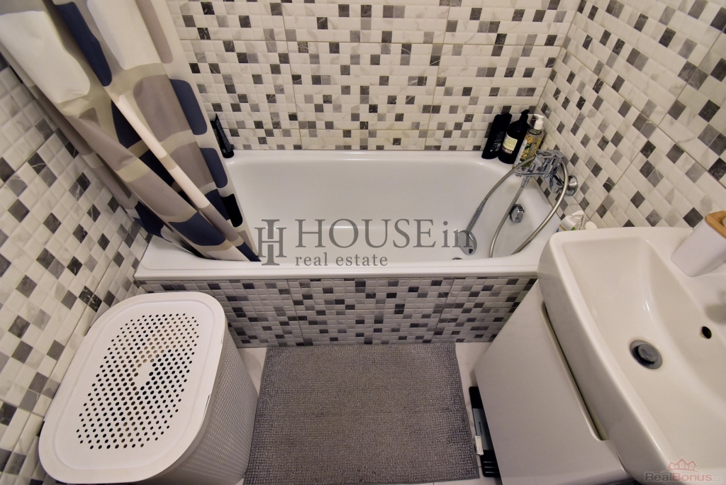 Kuchyně je vybavena plynovou varnou deskou, elektrickou troubou, digestoří, lednicí s mrazákem a spíží. V ložnici je k dispozici velká šatní skříň. V koupelně se nachází vana, umyvadlo, zrcadlo a pračka. Obývací pokoj je zařízen sedačkou, konferenčním stolkem, TV komodou a dvěma úložnými skříněmi.