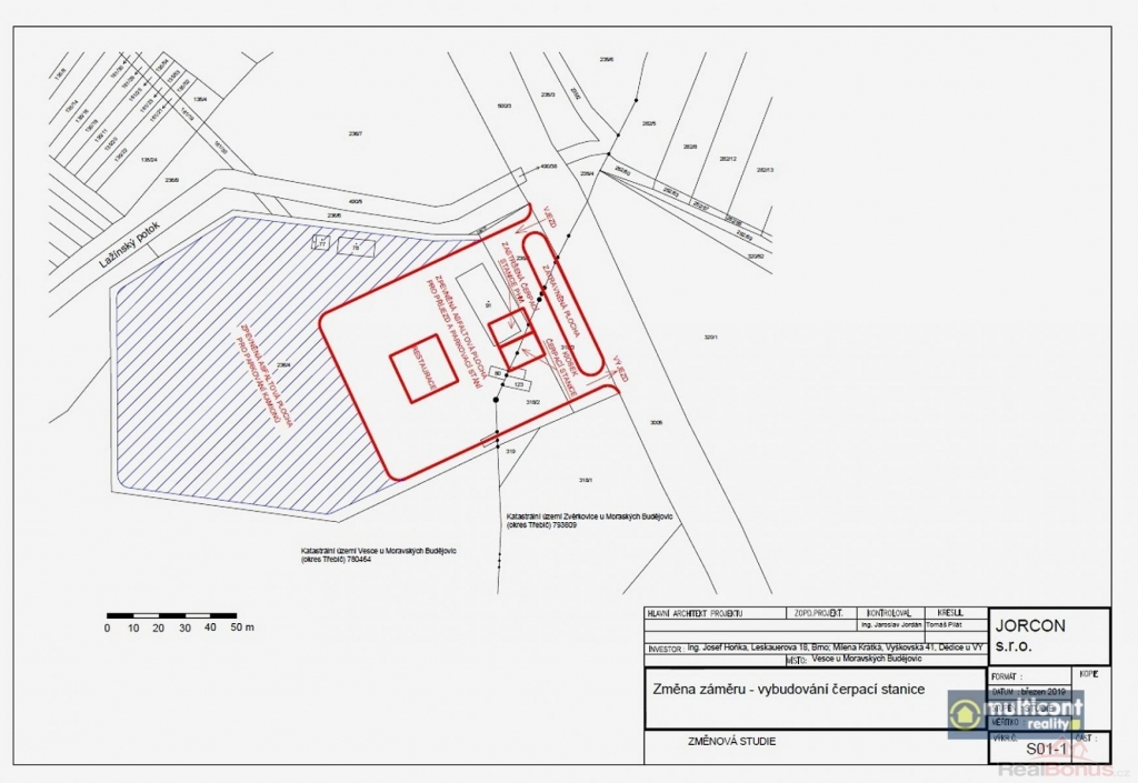 V exkluzivním zastoupení vlastníků si dovolujeme nabídnout pozemek, sousedící se silnicí Jihlava - Znojmo, u Moravských Budějovic, vhodný ke stavbě areálu motorestu, hotelu, čerpací stanice a dalších staveb typu např. Rohlenka. Pozemek se rozprostírá na pozemcích dvou katastrálních území a v minulosti zde byla obalovna, což skýtá výhodu přítomnosti všech inženýrských sítí v naddimenzované podobě, v areálu i samostatný transformátor, je zde možnost vybudování parkoviště pro cca 70 kamionů, tudíž by zde mohla vzniknout i odpočívka, tolik na této trase potřebná. Aktuálně stále v platnosti záměr vybudování čerpací stanice, i se studií, navíc s restaurací a již zmíněným parkovištěm pro kamiony na zpevněné ploše, včetně povolení ŘSD na jimi vybudovaný odbočovací pruh v délce 130 m. Plocha pozemku z větší části zpevněná, zbytky areálu disponují i mostní váhou, zbytkem stavby u ní, oploceno. Více informací podáme vážným zájemcům osobně a kvalifikovaně. Příležitost pro investory, kteří vědí, jaká je dopravní situace na trase Praha-Vídeň a zejména situace v oblasti zaparkování a odstavení vozidel. Nabízíme jim areál, přímo sousedící s touto frekventovanou silnicí, s bohatými možnostmi, jaké pozemek skýtá.