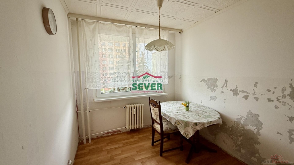 Nemovitosti SEVER vám zprostředkují prodej družstevního bytu s dispozicí 4+1 situovaného v okrajové části Litvínova v Janově. Byt, který se nachází v první patře panelového domu s výtahem, je v původním, udržovaném stavu, vhodný ihned k užívání i k rekonstrukci dle vlastních představ nových majitelů. Byt se skládá z předsíně, obývacího pokoje, kuchyně, tří samostatných pokojů, koupelny a WC. Bytové jádro je původní. Byt je ihned připraven k převodu na bytovém družstvu a k předání. Anuita je splacená, byt není možné převést do osobního vlastnictví.