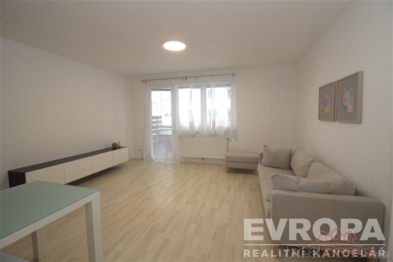 Byt je částečně vybavený, k dispozici Vám bude prostorná bílá kuchyňská linka s vestavěnými spotřebiči (lednice s mrazákem, trouba, varná deska, digestoř, mikrovlnná trouba a myčka) a jídelní stůl pro 2 osoby. V obýváku jsou zavěšené skříňky pod TV, gauč a taburet. Spoustu úložného prostoru poskytne vestavěná skříň na chodbě a šatní skříň v ložnici. Na podlaze v obýváku a ložnici je laminátová plovoucí podlaha, v ostatních místnostech je dlažba. Kvalitu bydlení zvyšují bezpečnostní skla a protihluková stěna v ložnici.