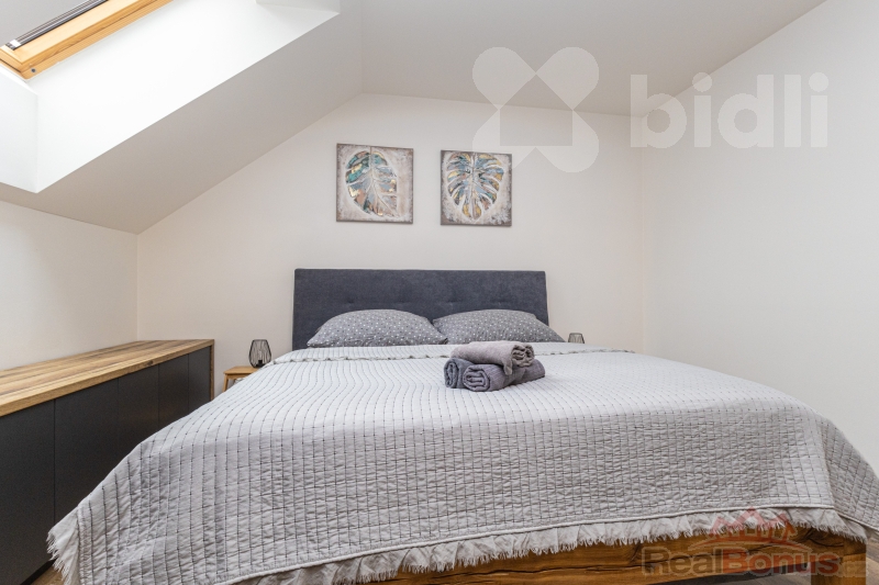 Nabízíme k prodeji moderní apartmánový byt situovaný v 2NP revitalizovaného bytového domu s výtahem, který se nachází v malebném podhorském městě Vrbno pod Pradědem. Dům je energeticky nenáročný a poskytuje svým obyvatelům komfortní a úsporné bydlení v těsné blízkosti přírody. Apartmán je orientovaný na západ, díky čemuž nabízí krásné výhledy na okolní přírodu a dokonalé večerní atmosféry na prostorné z části kryté střechou terase. Interiér je nadčasově a velmi kvalitně vybaven, a to včetně moderního systému podlahového vytápění s možností dálkového ovládání. Stejně tak je i vstup do apartmánu řešen chytrým kódovým zámkem, ideálním v případě využití nemovitosti k rekreačním pronájmům. Stejně tak i k trvalému bydlení.